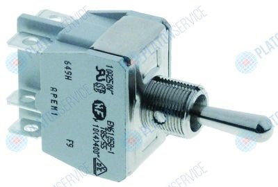 Выключатель рычажный резьба M12x0,75 2CO 250В 15А ON-OFF-ON плоский штекер 6,3 мм
